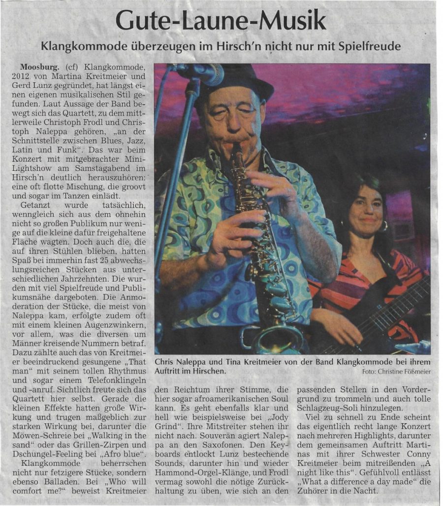 Hier ein paar Impressionen von unseren letzten beiden Konzerten in „Holgers Weinladen“ und beim Jazz Club Hirsch in Moosburg. Dank noch an Evelyn Englisch und Werner Wiesmeier für die tollen Bilder. Dazu der letzte Pressebericht der Moosburger Zeitung.